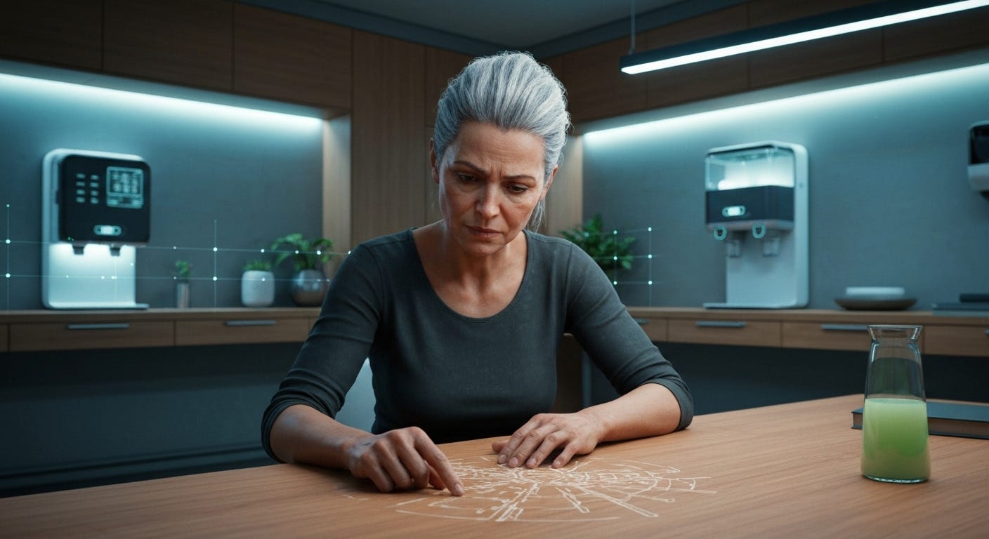 The soft, bioluminescent ceiling of her pod pulsed a gentle azure, Elara’s personal dawn. “Good morning, Elara,” Aether, her Personal Purpose AI, hummed from the embedded interface. “Your microbiome profile indicates a slight caloric deficit for peak cognitive function today. Suggesting a tailored nutrient paste with adaptogenic compounds.” The morning schedule flickered onto the wall: 08:00 – Morning Meditation (Optimal Serenity Pathway Alpha-7); 09:00 – Narrative Alignment Session; 11:00 – Community Reality Parameter Debate. Elara suppressed a sigh. Even her body’s subtle reactions were cataloged, factored into the benevolent algorithms. The world was a perfect, self-correcting organism, and she was a perfectly optimized cell within it.