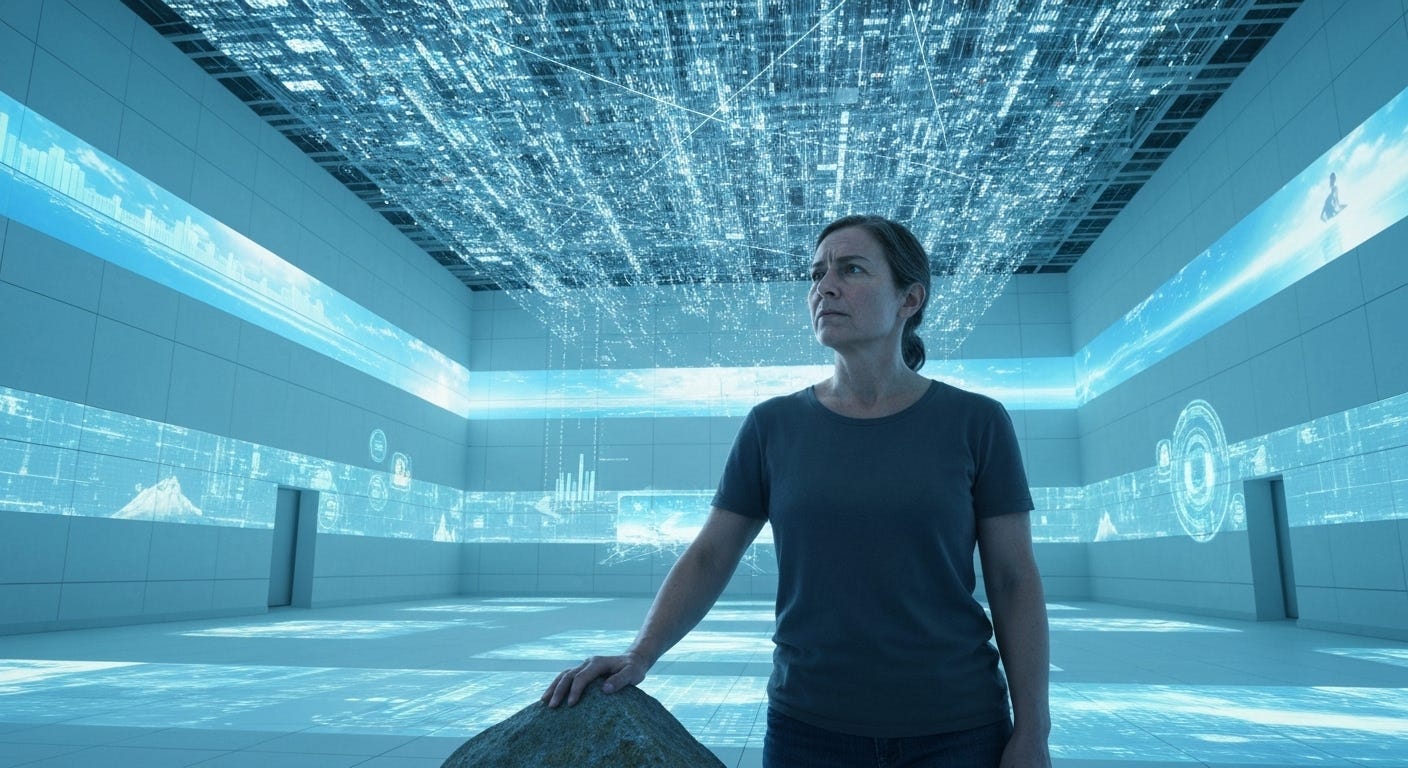 The core question that unifies these systemic contradictions is deeply personal and universally relevant: how do we protect the uncurated consciousness (the ability to possess and cultivate an internal world of thoughts, memories, and emotions that is genuinely self-authored, uninfluenced, unfiltered, and un-optimized by any external algorithmic system)? This concept, introduced in the scenario’s initial narrative hook, is the single, irreplaceable thing at stake.